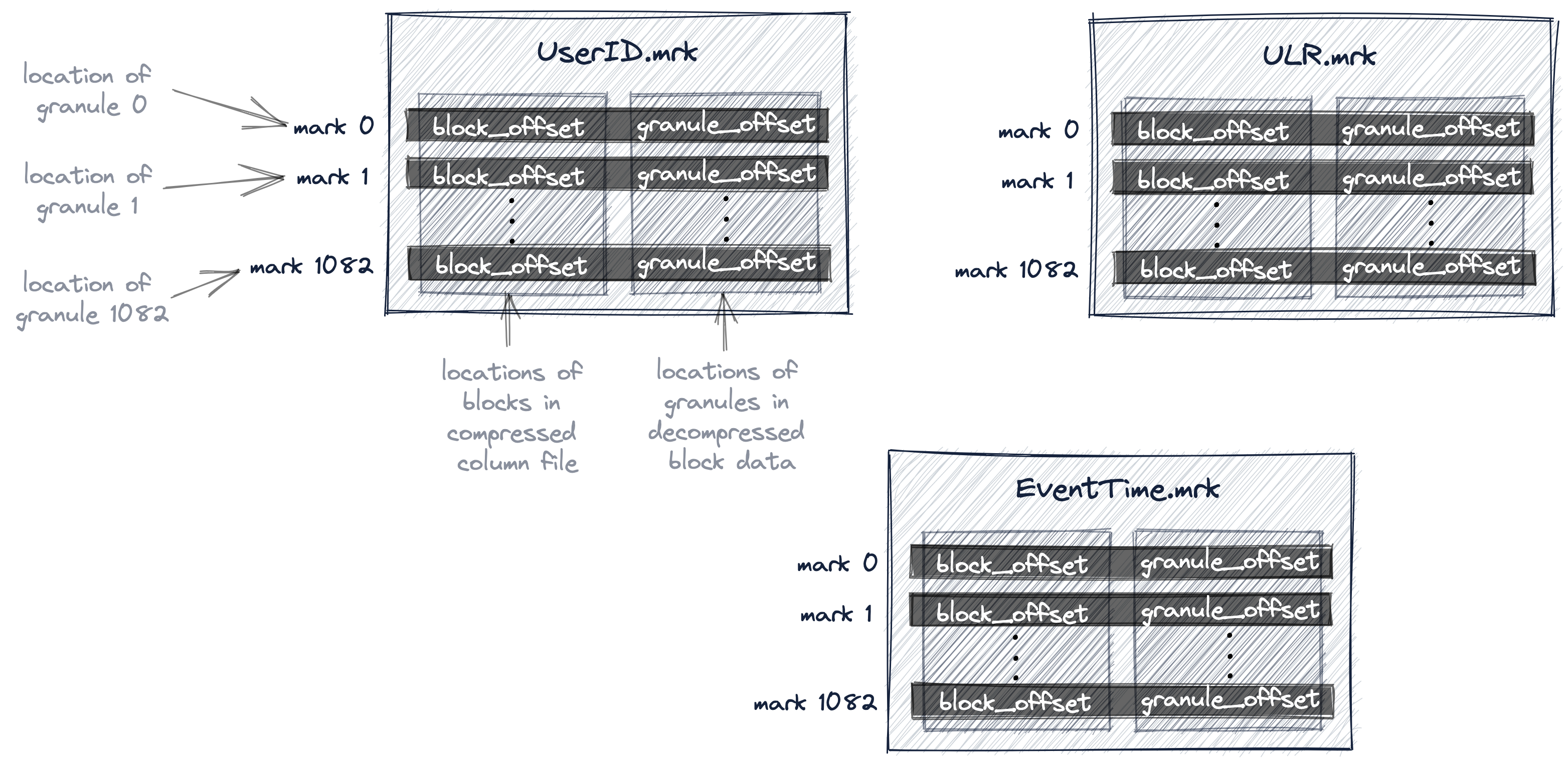 • We are numbering granules starting with 0 in order to be aligned with the ClickHouse internal numbering scheme that is also used for logging messages.